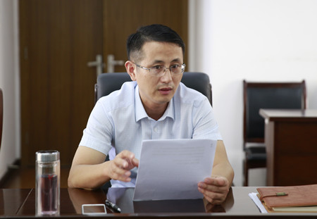 圖為集團董事會秘書王雍對下階段工作提出要求