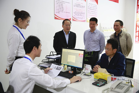 圖為市委常委、常務(wù)副市長(zhǎng)董貴波到臺(tái)州高速股權(quán)椒江收購點(diǎn)調(diào)研