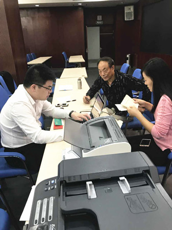 戴著一副黑框眼鏡,憨實(shí)魁梧的身形,說話輕言慢語(yǔ)。據(jù)說,某天下班后,還坐在椅子上打電話,一臉溫柔,竊竊私語(yǔ),同事一直以為他在談戀愛,這打完了電話,才知道是接到股東的電話了,跟對(duì)方在解釋股權(quán)收購(gòu)政策呢。 在股權(quán)流動(dòng)收購(gòu)點(diǎn),小李是電腦操作人員,所以也不大參與解說工作。只是那天正好一位阿婆坐在了電腦對(duì)面,說話之間才知大字不識(shí),是聽鄰居說的,就自己摸到這里了。正好手里也空了,李騰飛頓頓身子,放松下來,以黃巖特有的吳言儂語(yǔ)跟阿婆解釋了十幾分鐘,果然,白凈的臉上是一臉的和氣,沉穩(wěn)又實(shí)在,確實(shí)是傳說中的暖男一枚呀。末了,幫阿婆代簽了字,讓阿婆按了手指印。 但是,在工作的時(shí)候,小李讓我們見識(shí)到了“騰飛”的效果。流動(dòng)點(diǎn)只設(shè)一臺(tái)筆記本電腦,線上操作都?xì)w他,在大溪鎮(zhèn)政府,來的股東有百十號(hào),流動(dòng)小組包括駕駛員何杰靚迅速開展了流水作業(yè)。此時(shí)此刻,小李那一雙肥白的大手在小巧的鍵盤上十指翻飛,靈活敏捷,操作如行云流水,打印機(jī)刷刷地響,不停飛出一份份協(xié)議,傳到下一個(gè)工作人員這里。這才知道,每一個(gè)人的名字都是名副其實(shí)的,“騰飛”的含義是在這里體現(xiàn)的呀。 鄭蔚