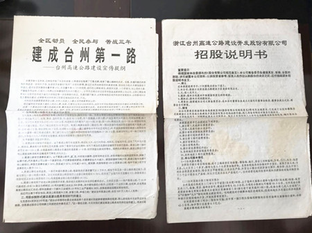 臨近中午的時候,來了一位面目普通的中年人,他準備了他父親和母親的身份證還有銀行卡,工作人員以為是兩筆代辦業(yè)務(wù),原來是查詢股東紀錄的,查詢的股東名字叫婁巖奶,因為巖奶兩字比較少見,我記得上午的時候辦理過一個叫巖奶的股東的收購業(yè)務(wù),就非常好奇的詢問,這時候管理處的工作人員解釋,他們這里有兩個叫巖奶的人,一個是婁巖奶,一個是宋巖奶,經(jīng)過查詢卻沒有找到婁巖奶的股東信息。據(jù)管理處工作人員回憶,1993年婁巖奶當(dāng)時還未退休,應(yīng)該購買了股票。經(jīng)過查詢管理處的退休人員清冊,發(fā)現(xiàn)婁巖奶于1994年12月才退休,根據(jù)初步判斷估計該股東可能當(dāng)時出于各種原因并沒有購買股票。為了慎重起見,于是工作人員請求管理處把股票購買的原始檔案調(diào)閱出來查看,翻開斑駁的原始記錄,一個一個仔細查詢股東姓名,但是很遺憾并沒有該股東的信息,工作人員肯定地回復(fù)了股東。雖然讓婁巖奶的兒子失望了,但是工作人員卻在斑駁的檔案中看到了非常珍貴的歷史檔案:《全區(qū)動員、全民參與、苦戰(zhàn)三年、建成臺州第一路—臺州高速公路建設(shè)宣傳提綱》、《浙江臺州高速公路建設(shè)開發(fā)股份有限公司招股說明書》,看著這些檔案,眼睛有些濕潤,仿佛又回到了那個波瀾壯闊的年代,也為高速集團曾經(jīng)的創(chuàng)舉而驕傲。