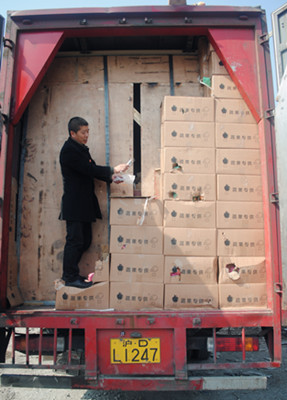 今年3月1日凌晨2時許,一輛標(biāo)有“蔬菜特供”、車牌號為滬DL1247的紅色廂式貨車駛進臺州高速公路臺州收費所“綠農(nóng)車”專用收費道口,出口司機申報“綠農(nóng)車”運送蘋果,要求減免通行,讀卡后顯示該車免費金額為250元,收費人員按規(guī)定對該車進行開廂核查。