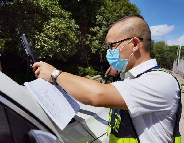 這是征費(fèi)四班班長(zhǎng)鄭星和駕駛員的對(duì)話,他手持iPad,不停地在屏幕上滑動(dòng)著、查詢著。天氣炎熱,大貨車(chē)開(kāi)車(chē)時(shí)較為顛簸,3M膠軟化黏不牢,ETC設(shè)備容易脫落。ETC設(shè)備一旦掉落,則會(huì)提示“標(biāo)簽已失效”,就無(wú)法正常工作,不能實(shí)現(xiàn)不停車(chē)出入高速公路ETC車(chē)道,給來(lái)往司機(jī)和收費(fèi)人員增添了很多麻煩。為全力配合ETC服務(wù)需要,鄭星冒著酷暑高溫,不厭其煩地幫著司乘人員解決問(wèn)題,一天下來(lái)工作服濕了又干,干了又濕,他就是臺(tái)州高速上的最美堅(jiān)守者。