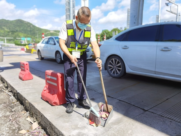烈日灼燒著大地,高速兩邊的樹(shù)葉都被曬得打了卷,悶熱的空氣讓人喘不過(guò)氣來(lái),在溫嶺西收費(fèi)站,不少司乘人員在過(guò)站時(shí),隨手將食品的塑料袋、煙頭、塑料瓶等垃圾丟棄在收費(fèi)站出口處,班長(zhǎng)陳軍見(jiàn)到隨時(shí)清掃路面,保持收費(fèi)區(qū)域衛(wèi)生干凈整潔。彎腰、清掃、起運(yùn),看似簡(jiǎn)單的一組動(dòng)作,陳軍每天要重復(fù)幾十次,衣服一天不知要被汗?jié)穸嗌俦椋?/span>但他堅(jiān)持以良好的形象展示臺(tái)州高速的精神風(fēng)貌。他就是臺(tái)州高速上的最美堅(jiān)守者。