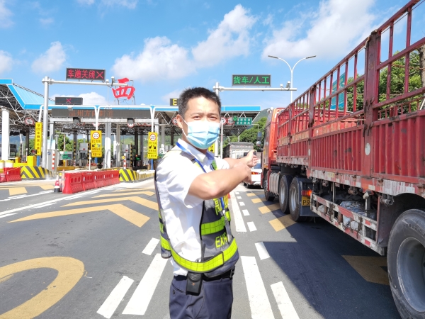 “師傅,慢點(diǎn),注意后方來(lái)車(chē),往左一點(diǎn)?!睖貛X西收費(fèi)站入口處,一位身高一米七五左右的男同志正在維護(hù)著交通秩序。他就是征費(fèi)三班班長(zhǎng)李寧??崾罡邷?zé)o法消磨他的斗志,揮汗如雨對(duì)他而言已是家常便飯。溫嶺西收費(fèi)站車(chē)流量大,貨車(chē)多,當(dāng)遇到三超車(chē)輛或者節(jié)假日的時(shí)候,入口處就會(huì)排成長(zhǎng)龍。七八月份的太陽(yáng)十分毒辣,經(jīng)過(guò)一天的高溫,收費(fèi)站入口的馬路上熱浪滾滾,人站在外面不到5分鐘就會(huì)汗流浹背。但為保持入口交通的安全暢通,李寧不斷做著各種不同的手勢(shì),指揮著過(guò)往的車(chē)輛通行,絲毫顧不得擦拭順著臉頰流下來(lái)的汗水。他就是臺(tái)州高速上的最美堅(jiān)守者。