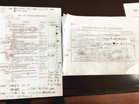 圖為臺州收費所整齊規(guī)范的黨建臺賬 檢查組按照督查清單,主要檢查了各支部“兩學一做”學習教育常態(tài)化、制度化開展工作等黨建臺賬資料,包括各種學習計劃、安排、學習筆記、學習記錄、會議記錄、文明創(chuàng)建、“作風建設年”等內容的完成落實情況。 通過監(jiān)督檢查,集團檢查組對各支部進行了全方位、多角度的了解,雖然發(fā)現(xiàn)存在一定問題,但各支部落實黨建工作情況總體良好,尤其是臺州收費所黨支部,不僅材料積累豐富,而且檔案臺賬整齊完備、規(guī)范有序,值得其它支部學習。 下一步,各支部將針對檢查中發(fā)現(xiàn)的問題,迅速抓好整改落實,推進公司黨建工作再上新水平。 毛宇航