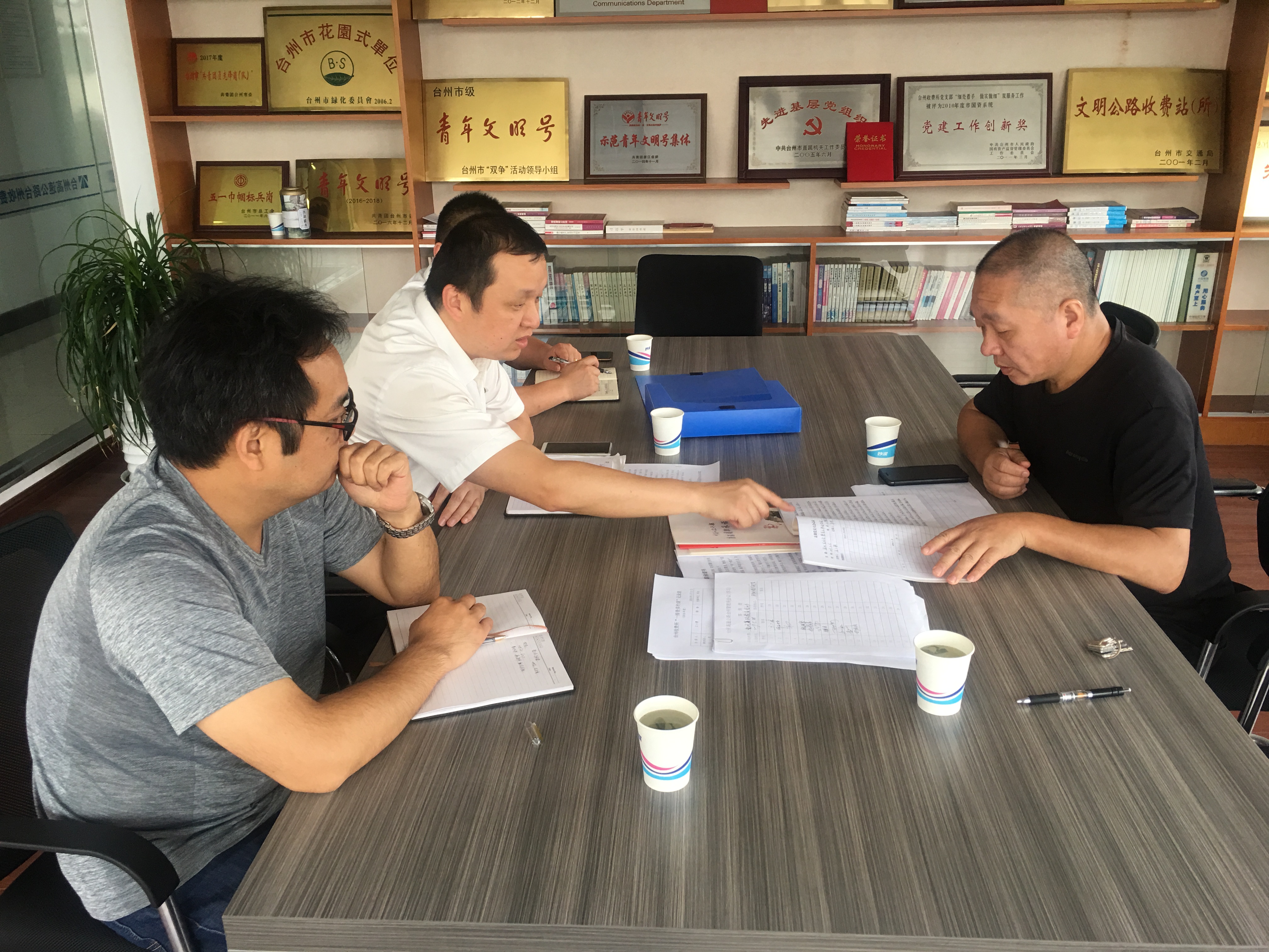 圖為檢查組在臺(tái)州收費(fèi)所檢查 本次檢查以年初簽訂的《黨風(fēng)廉政建設(shè)責(zé)任書》和新出臺(tái)的《集團(tuán)公司黨風(fēng)廉政建設(shè)責(zé)任制檢查考核辦法》為依據(jù),以廉政教育開展頻率及支部書記上廉政黨課完成情況為重點(diǎn),通過聽取責(zé)任人工作情況介紹、翻閱相關(guān)工作臺(tái)帳資料等形式,查證黨風(fēng)廉政建設(shè)責(zé)任實(shí)際落實(shí)情況。