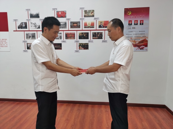 大溪嶺隧道所黨支部開展集體過“政治生日”活動 7月9日,大溪嶺隧道所黨支部的黨員們?yōu)?020年上半年入黨的黨員開展集體過“政治生日”活動。這次過生日的有三位黨員:王加平、鄭建鋼和金銀春同志。