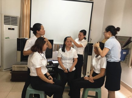 課堂中,一位老師為大家講解了“什么是頸椎病”、“頸椎的重要性”、“頸椎病的危害”等有關(guān)健康知識,另一位老師邀請現(xiàn)場人員做示范,用專業(yè)手法演示如何緩解頸椎亞健康狀態(tài)。 在老師的理論講解和親手示范下,在場人員分成兩組,現(xiàn)學(xué)現(xiàn)練,一組人用所學(xué)手法演示操作,另一組人坐著感受,老師在旁一一指點不足之處,然后兩組人員互換,交替學(xué)習(xí)。 此次健康講座不僅僅是紙上談兵,更讓每位員工親自練習(xí)操作手法,為今后在做好文明服務(wù)收費工作中,如何減緩頸椎疲勞提供了方法。 徐蘇蘇