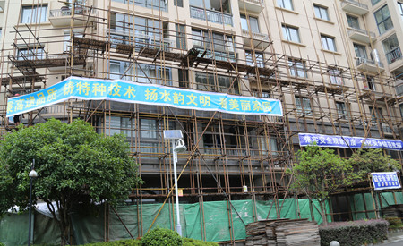 圖為溫嶺水韻新邨外墻維修工程現(xiàn)場 在結(jié)束文鼎苑工地的檢查后,羅小將來到溫嶺水韻新邨小區(qū)外墻修復(fù)工程的現(xiàn)場進行安全檢查。在現(xiàn)場,他仔細查看了外墻腳手架搭建情況,詳細了解相關(guān)安全措施的落實情況,他囑咐施工方一定要把安全各項措施做細做實,保質(zhì)保量地完成外墻修復(fù)工程。 包啟曉
