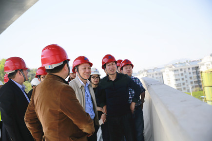 圖為公司總經(jīng)理張建平督查內(nèi)環(huán)北路(江口段)工程